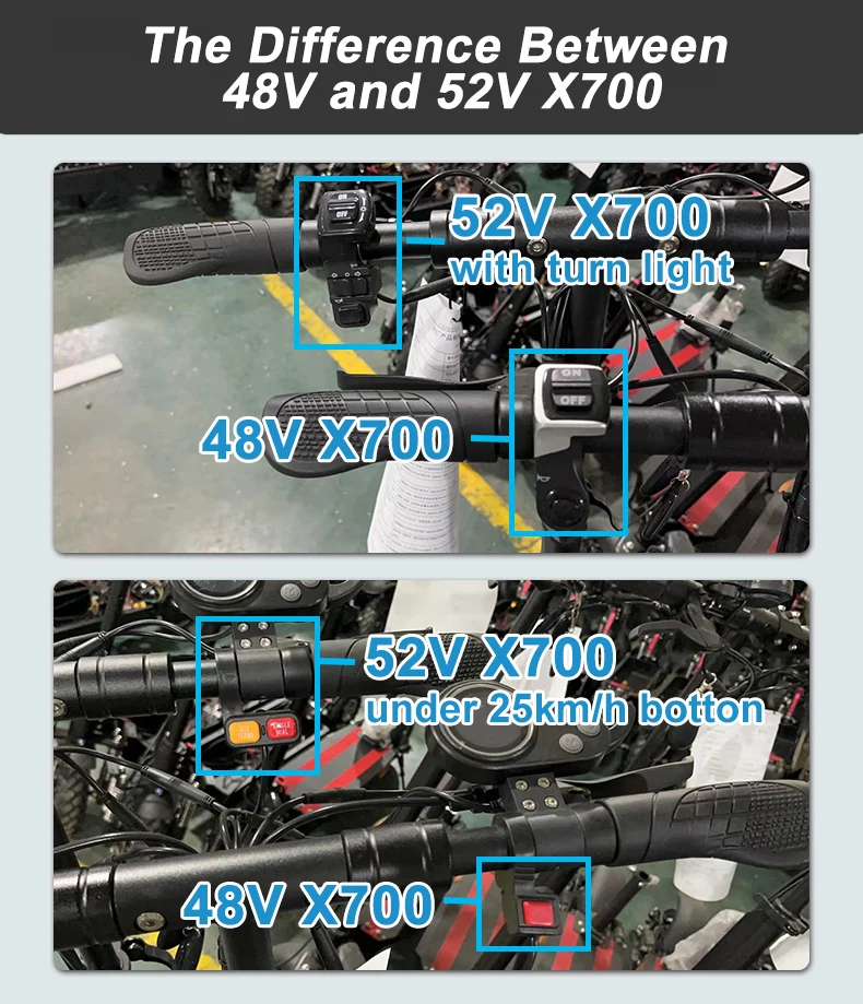 * Large Capacity and High-Quality Lithium Battery – X700 with Battery 52V/20AH can travel up to 65KM per charge, and recharges full in as little as 9 hours, making it ideal for suburb and city use.
